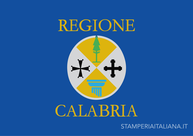 La bandiera della Regione Calabria, è azzurra, con un logo centrale formato dalla croce di Sant' Andrea. Il logo forma 4 quadranti: nel quarto alto il pino laricio; nel quarto in basso una colonna con capitello dorico; nel quarto di sinistra la croce bizantina e nel quarto di destra una croce potenziata.