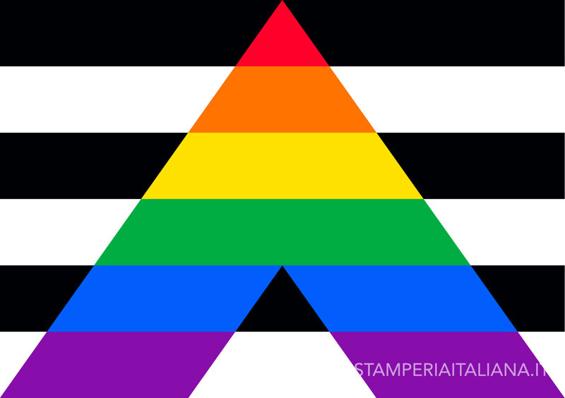 Si pensa che la bandiera dell’alleanza etero risalga alla fine degli anni 2000. Ecco cosa rappresentano le strisce e le forme presenti nel vessillo: le strisce bianche e nere rappresentano l’orientamento eterosessuale.