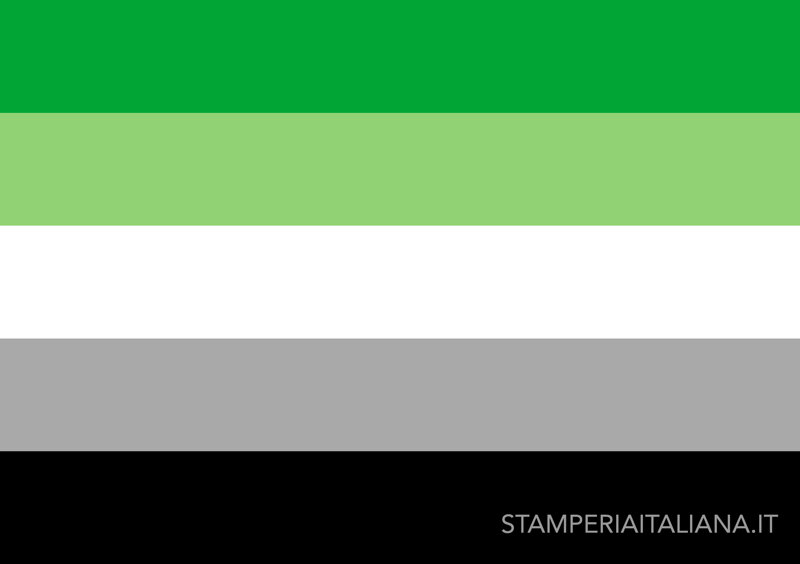 La bandiera degli aromantici più sventolata è caratterizzata da 6 strisce: quella verde scuro rappresenta l’aromanticismo;