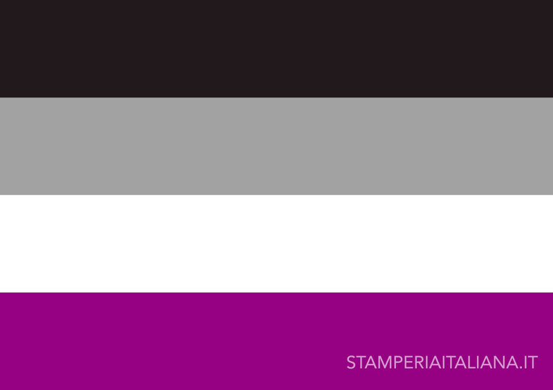 Questa bandiera rappresenta la gamma di identità asessuali costituita da persone con poca e con nessuna attrazione sessuale per qualsiasi genere: il nero rappresenta l’asessualità;