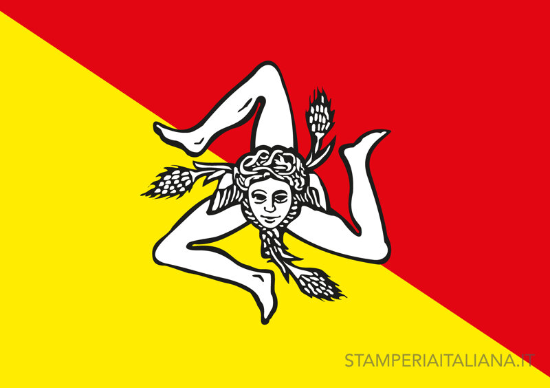 La bandiera ufficiale è un drappo bicolore giallorosso con al centro il vecchio simbolo triscelico della Trinacria, esprime diagonalmente il giallo della bandiera civica di Palermo e il rosso della bandiera civica di Corleone, che fu il primo comune siciliano a seguire l'esempio di Palermo nella rivolta contro gli Angioini. La bandiera al centro riproduce lo stemma della Regione siciliana composto dall'unione di due diversi simboli, la Triscele e il Gorgoneion.